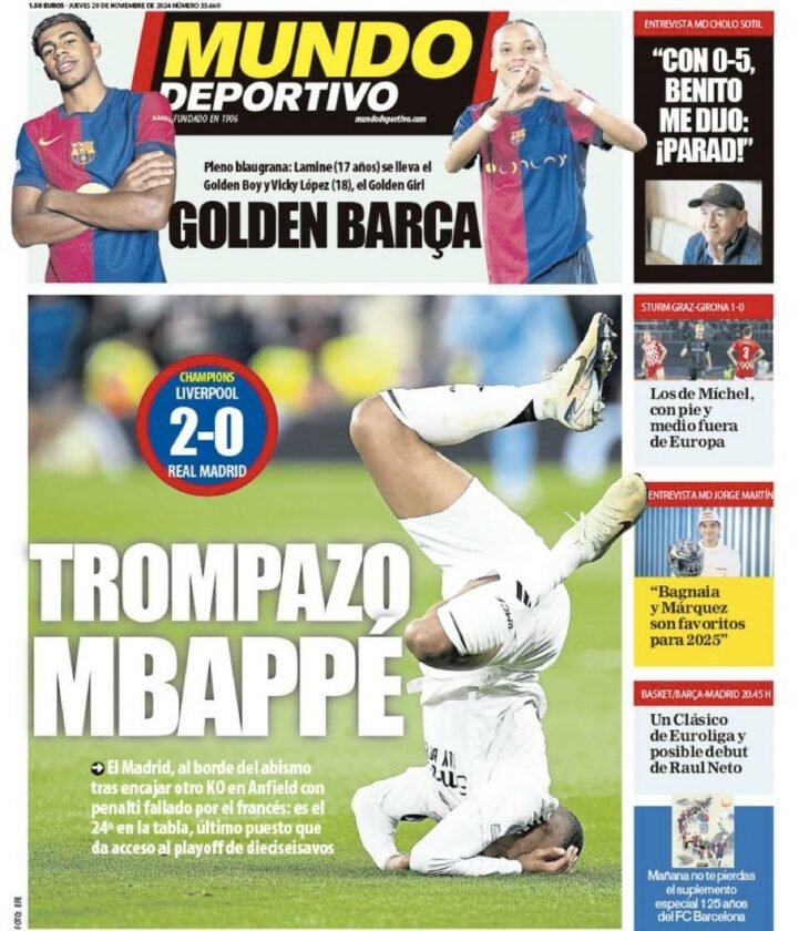 Cette défaite laisse le Real dans une position précaire en Ligue des champions, et Mbappé, en panne de confiance, risque de subir les critiques dans la presse madrilène.