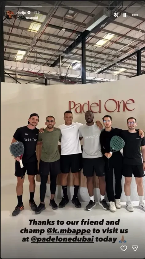 L’attaquant n’a pas caché sa présence, étant aperçu dans un hôtel de luxe. Surtout, il a été vu dans un club de padel, posant avec des célébrités, dont le chanteur Dadju. Le propriétaire du club a même remercié « notre ami et champion Kylian Mbappé de nous avoir rendu visite aujourd’hui ». Bien qu’il ait posé sans raquette, cette activité physique soulève des questions sur la gravité réelle de sa blessure à la cheville.